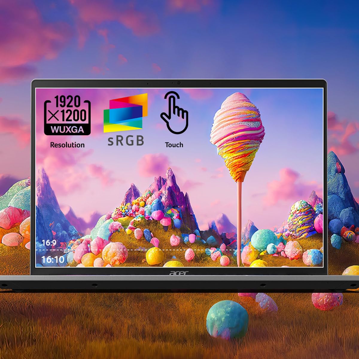 - Độ sáng 400nits kết hợp công nghệ Acer ComfyView™ giúp hiển thị rõ ràng trong nhiều điều kiện ánh sáng, đồng thời giảm ánh sáng xanh để bảo vệ mắt khi sử dụng lâu dài.