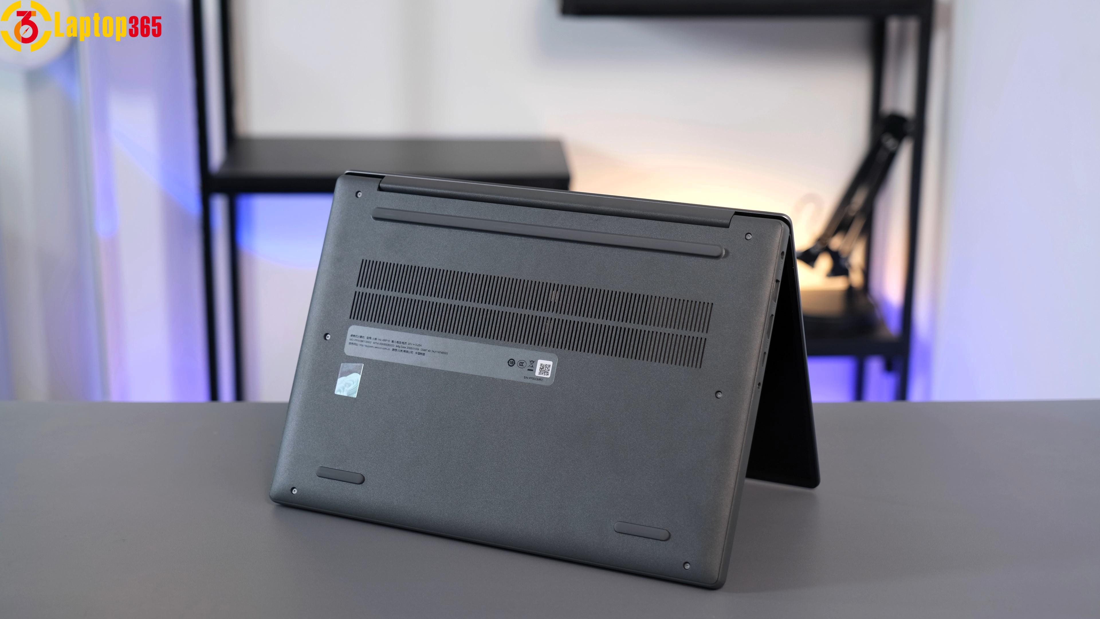 Lenovo Xiaoxin 14C ARP10 sở hữu thiết kế được chế tác tỉ mỉ, kết hợp giữa phong cách hiện đại và sự tinh tế. Chiếc laptop này có vỏ kim loại màu xám trung tính, vừa sang trọng vừa chắc chắn, giúp giảm thiểu dấu vân tay hiệu quả sau thời gian dài sử dụng. Màn hình 14 inch giúp kích thước tổng thể nhỏ gọn hơn, dễ dàng bỏ vào ba lô hoặc túi xách để mang theo một cách tiện lợi. Thiết kế viền siêu hẹp giúp tăng tỷ lệ màn hình so với thân máy, tạo ra trải nghiệm hình ảnh rộng rãi hơn, trong khi tỷ lệ khung hình 16:10 được tối ưu hóa cho công việc văn phòng, đặc biệt phù hợp để đọc tài liệu, xử lý bảng tính hoặc thao tác đa cửa sổ.